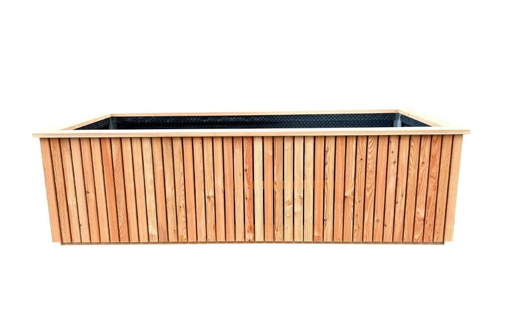 Wenn du deinen Garten nicht nur bepflanzen, sondern mit einem stilvollen Blickfang aufwerten möchtest, ist das Hochbeet Elise 111 x 286 die erste Wahl für dich. Mit einer stattlichen Länge von fast drei Metern bietet es dir eine riesige Anbaufläche für deine Gartenträume, verpackt in ein exklusives Design: Die vertikal ausgerichteten Lärchenlatten (35 x 60 mm) verleihen dem Beet eine schlanke, moderne Eleganz, die von einem massiven, auf Gehrung geschnittenen Handlauf perfekt abgerundet wird – ein echtes Schmuckstück für jede anspruchsvolle Gartengestaltung.